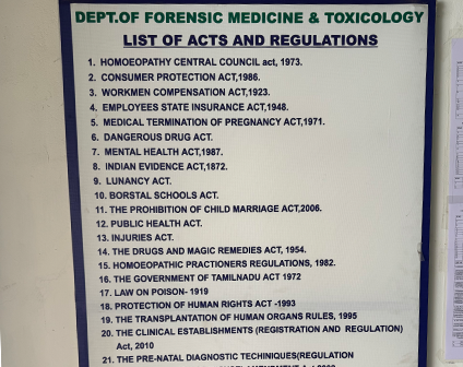 Describe the general principles of analytical toxicology. Medical jurisprudence in view of the consumer protection act. At the end of the course, the student should be able to make observations and logical inferences in order to initiate inquiries in criminal matters and medico-legal problems.